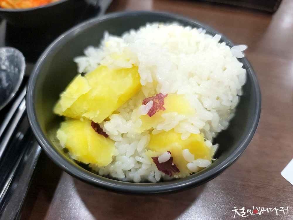 고구마가 들어있는 갓 지은 밥이라니,