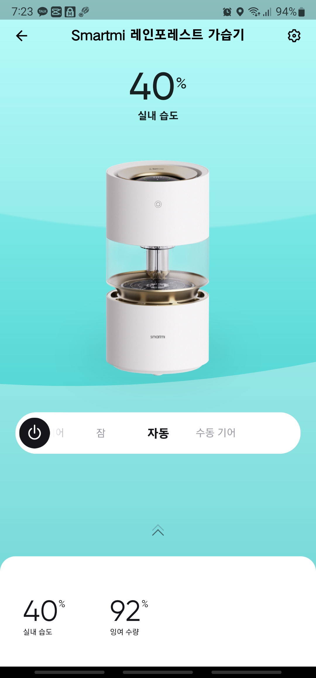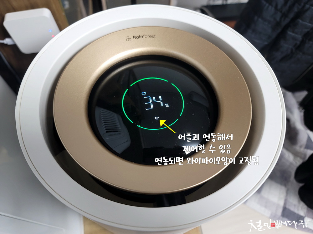 모두 녹색으로 들어와 있고, 가습기가 작동하면서,
