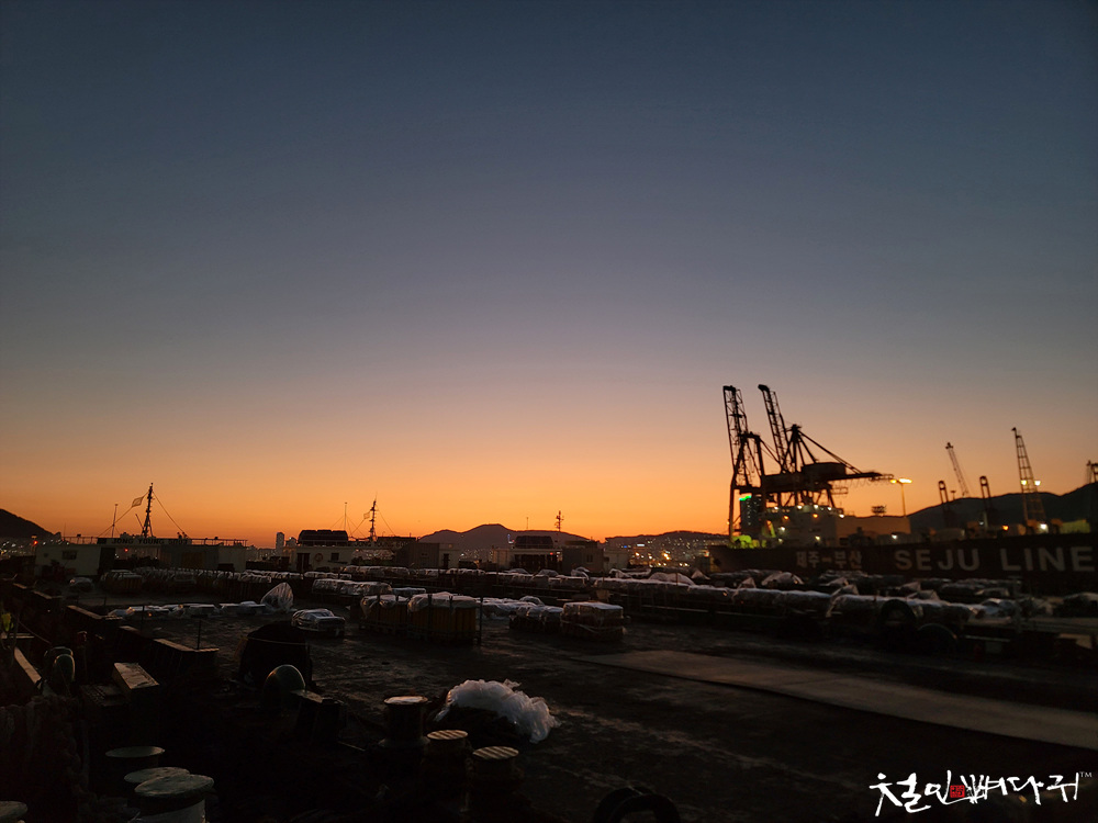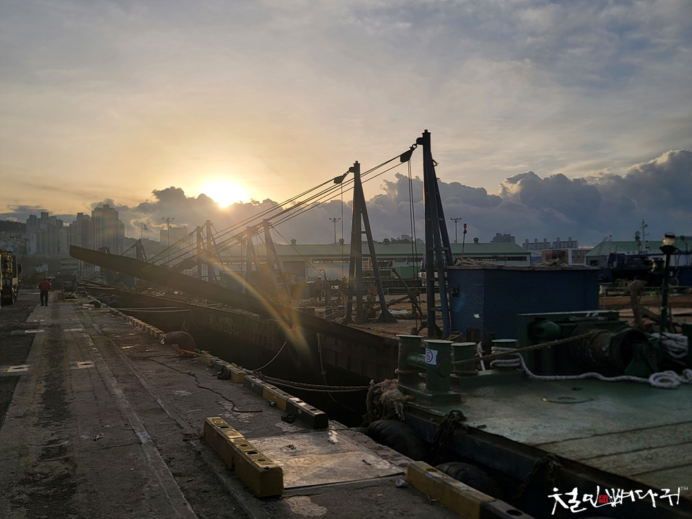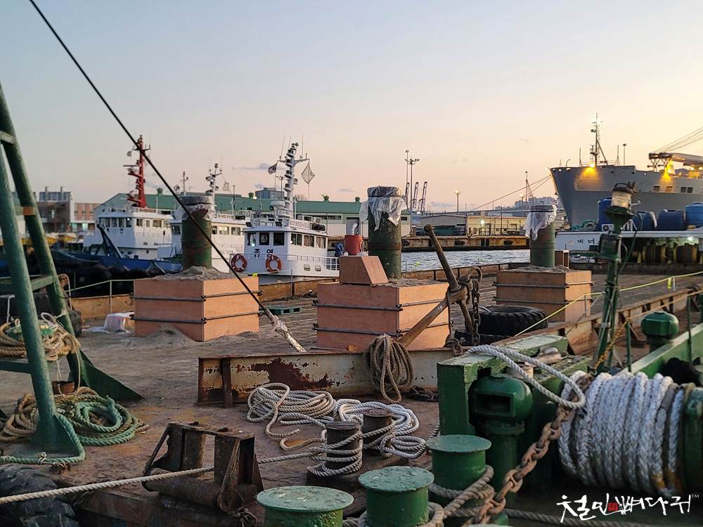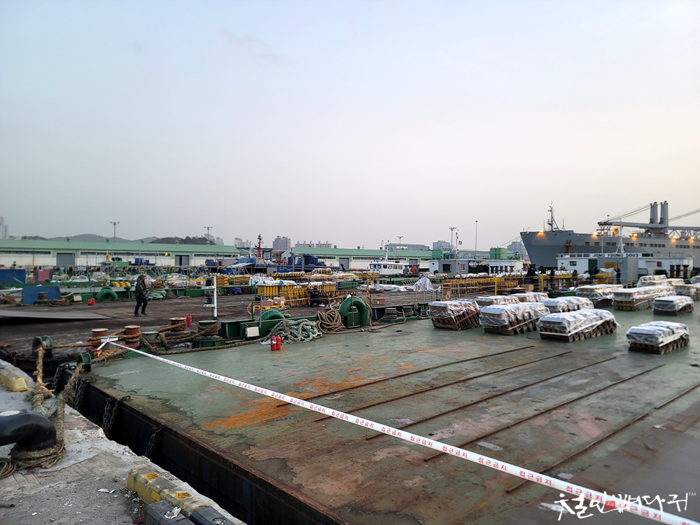 일 끝나고 퇴근할 때, 작업된 바지선의