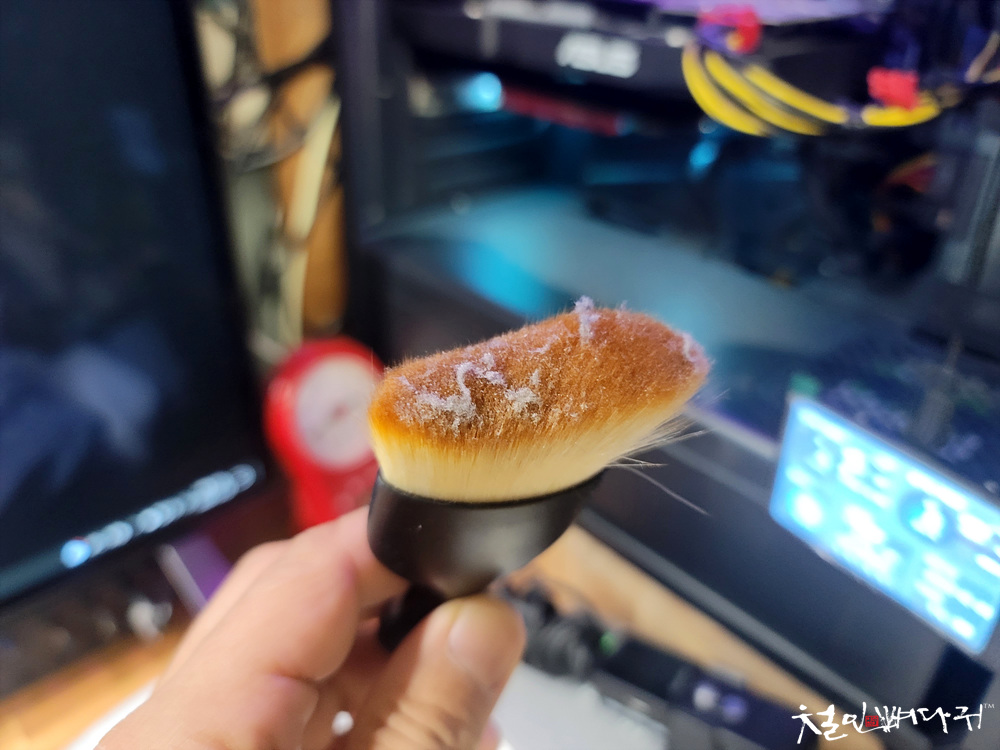 붓은 아주 부드러웠는데, 먼지는