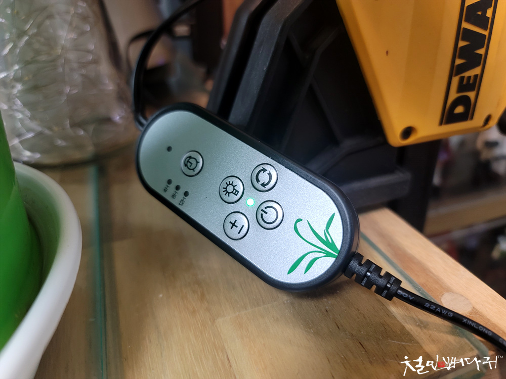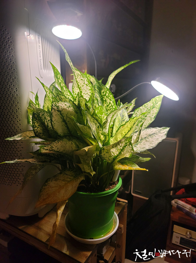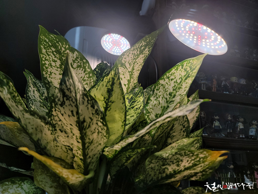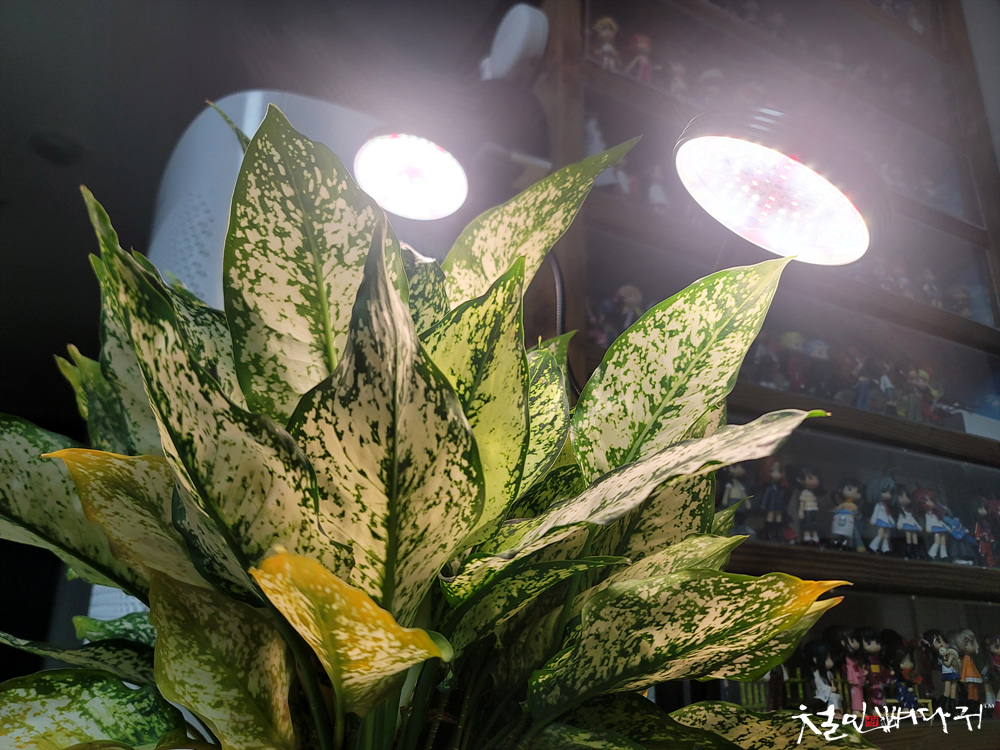 최근에 집에 들여놓은 식물에 비춰주고 있습니다.