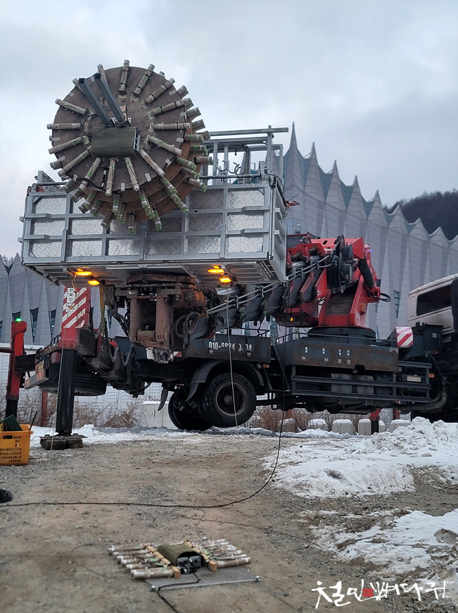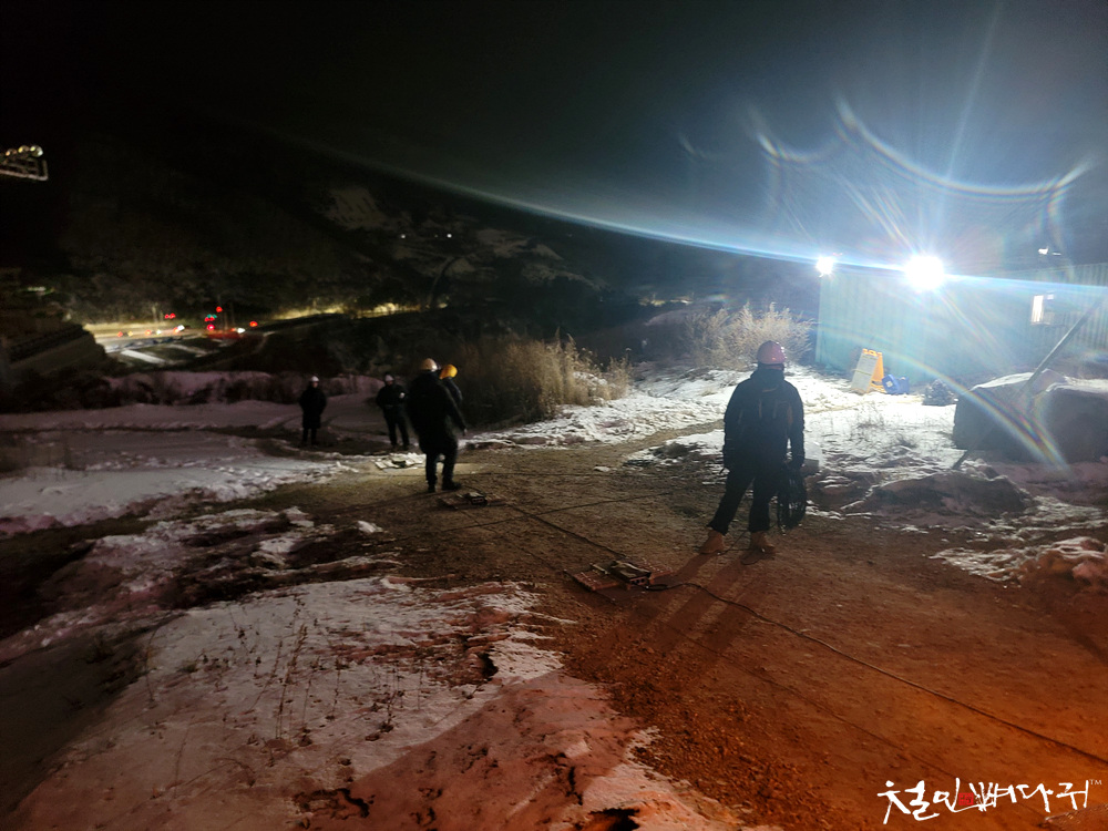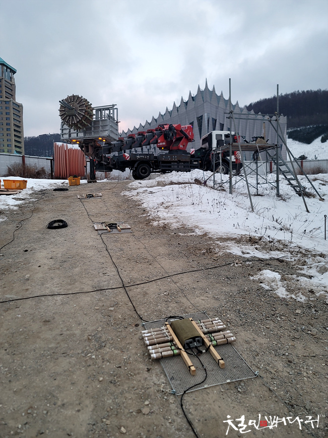 눈 위에서 불꽃놀이 설치작업도 합니다.