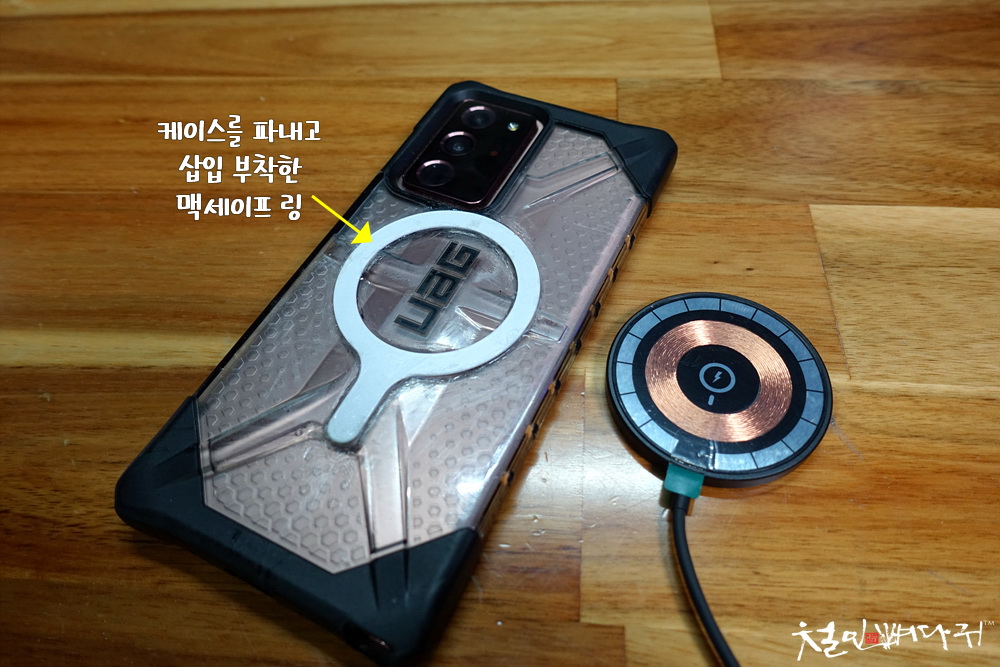 강제로 부착한 맥세이프링에