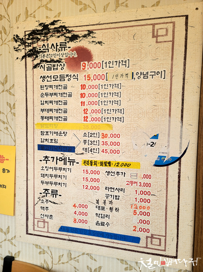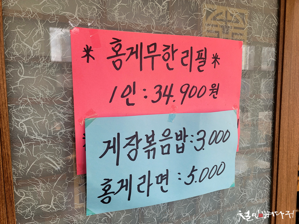 따로 적혀있는 참바다대게 식당의 메뉴들입니다.