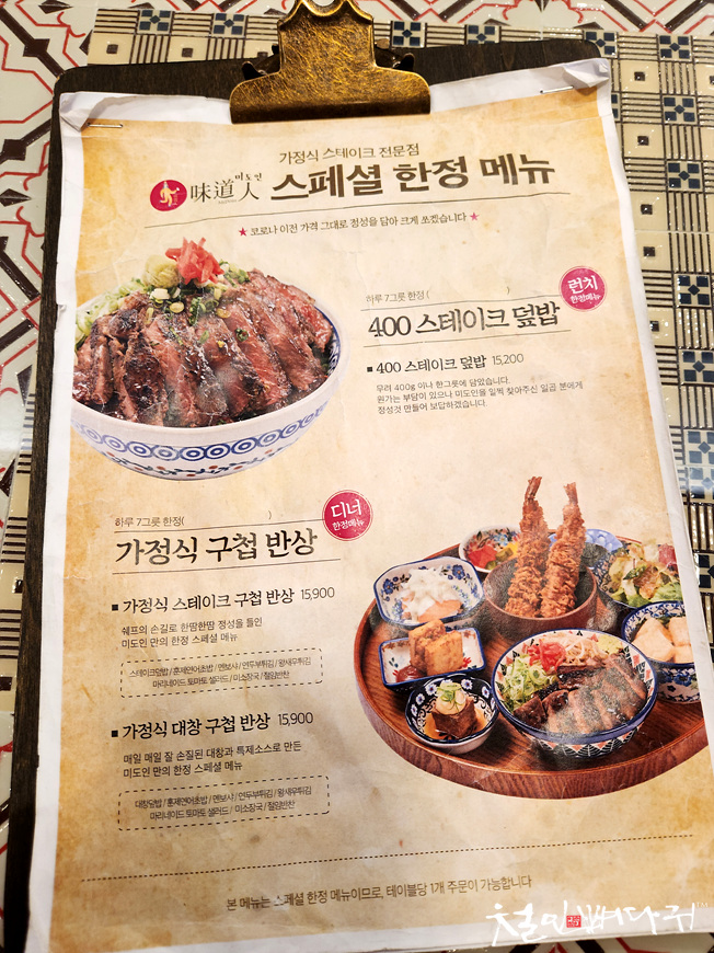 점심때 한정메뉴와 저녁때 한정메뉴는