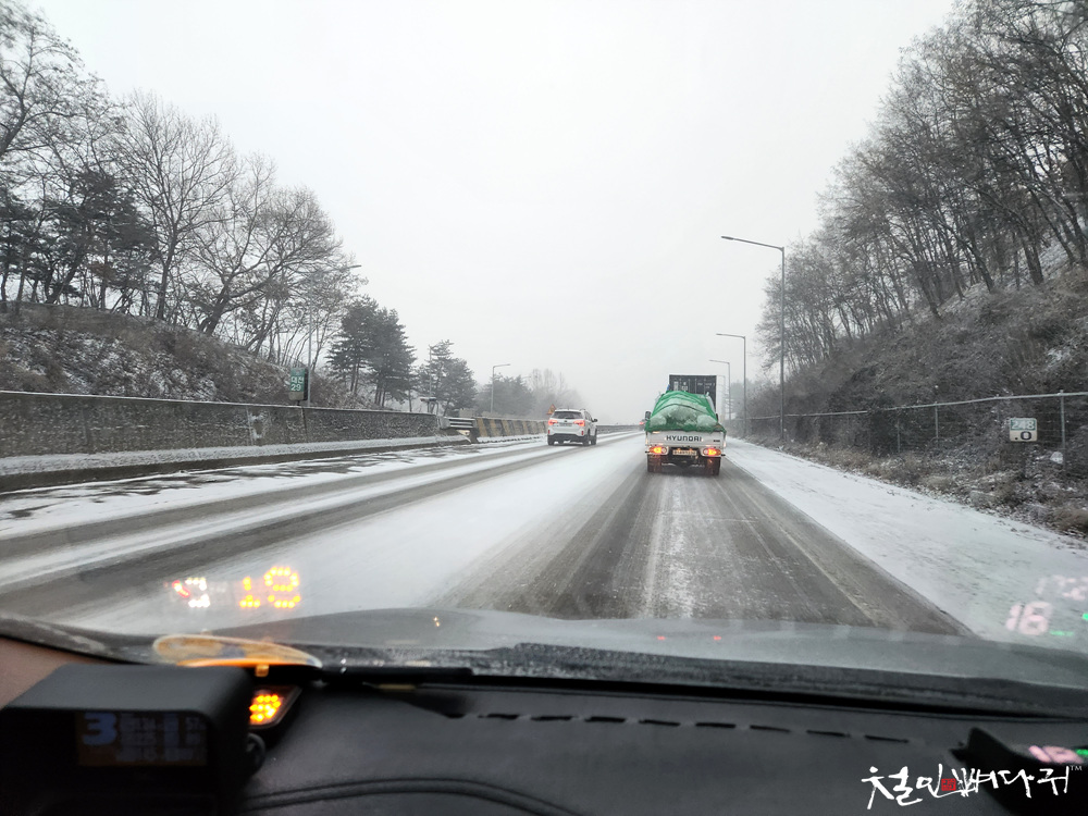영월쯤 오니 눈이 다 녹아서 없었습니다.
