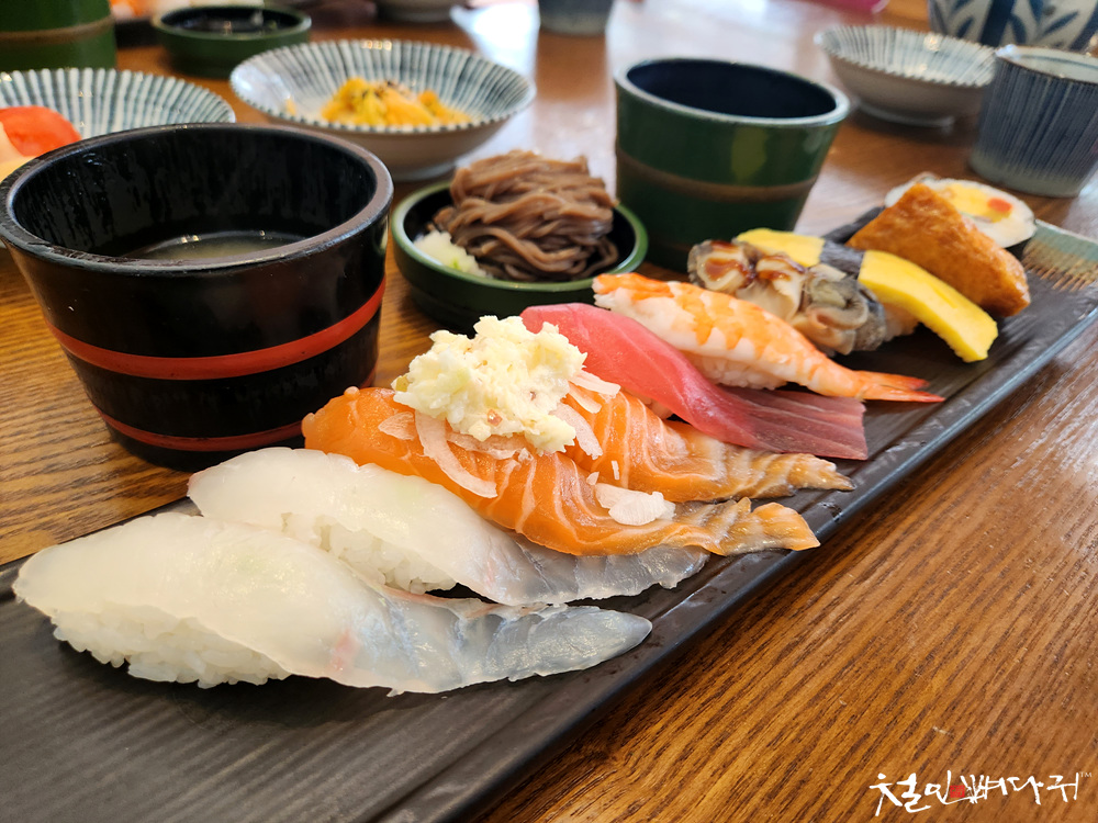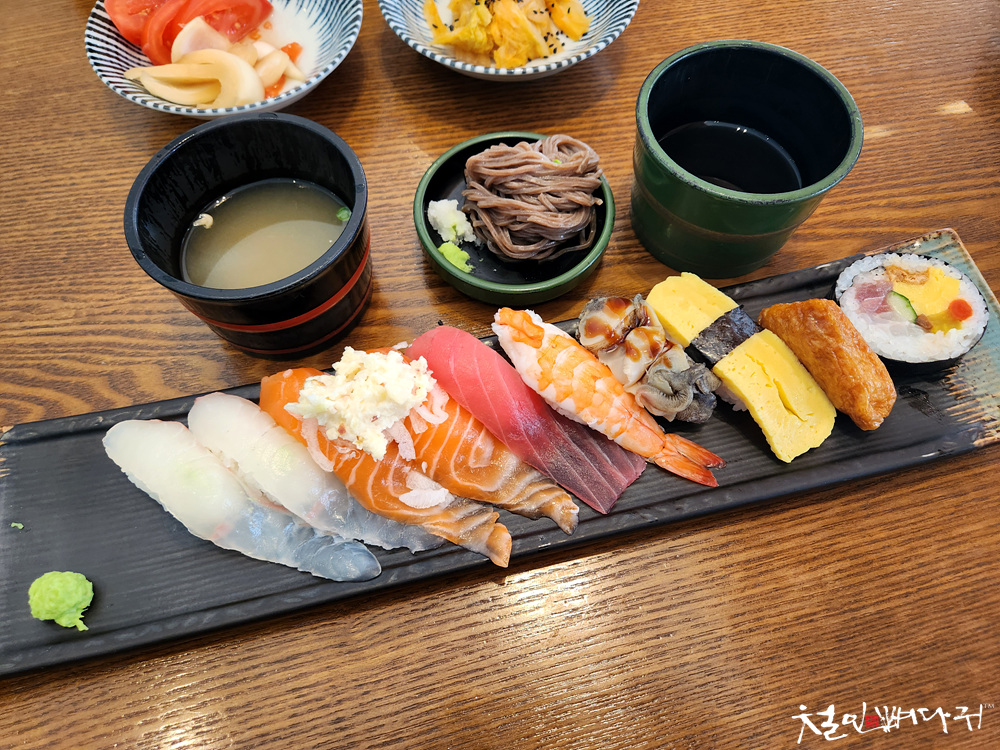 메밀소바 먹고 있으면 초밥이 나옵니다.