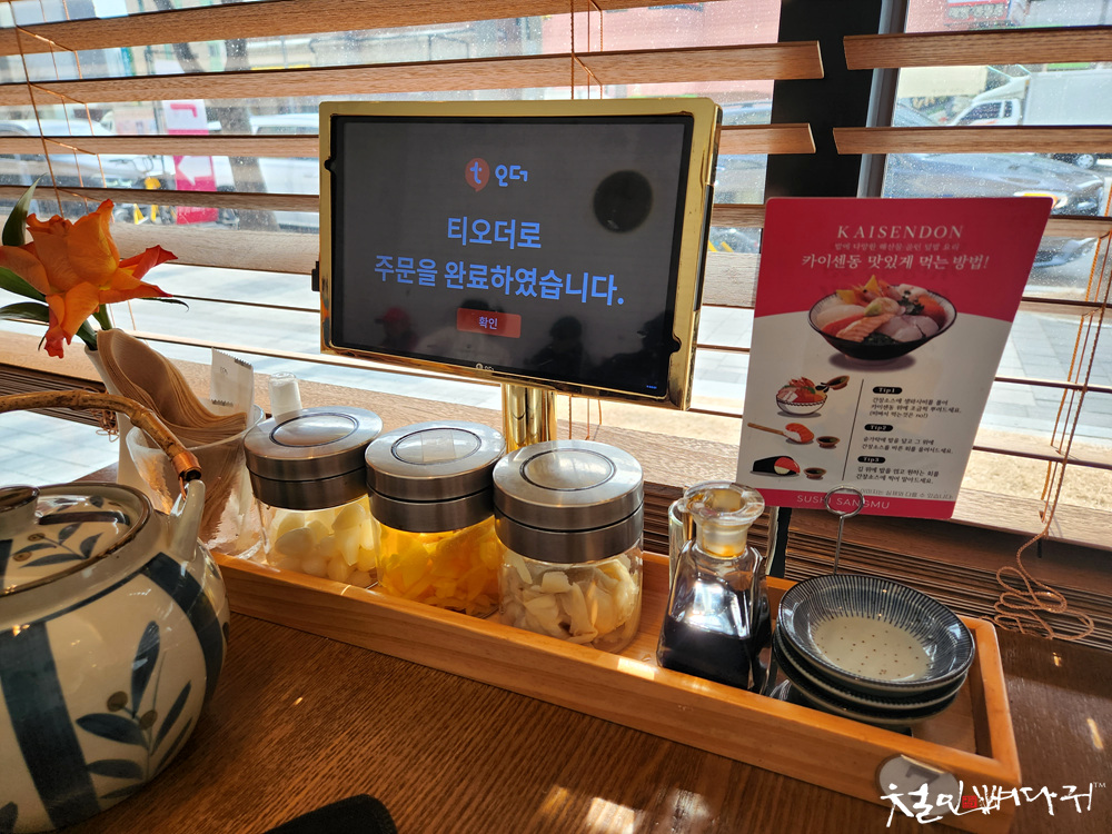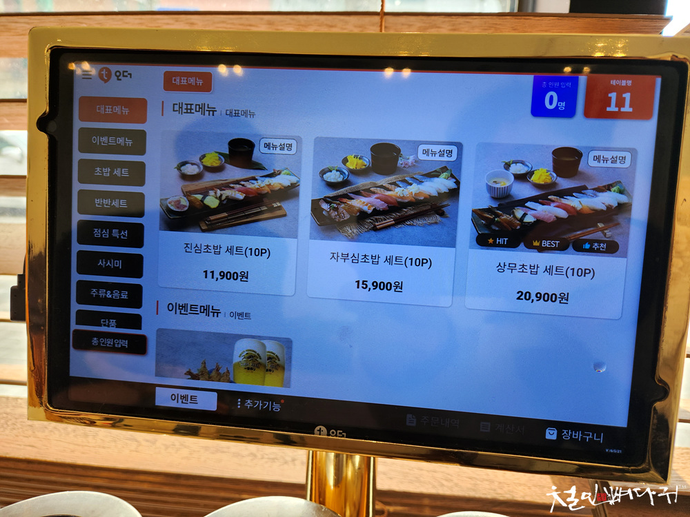 테이블에 태블릿으로 메뉴판이 있어서
