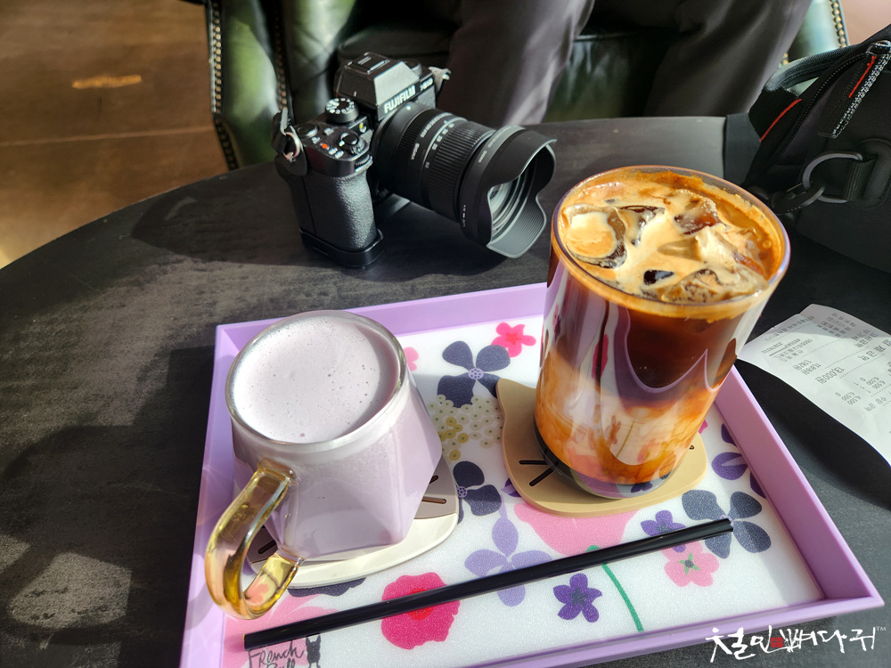자색고구마라떼와 흑당라떼를 주문했습니다.