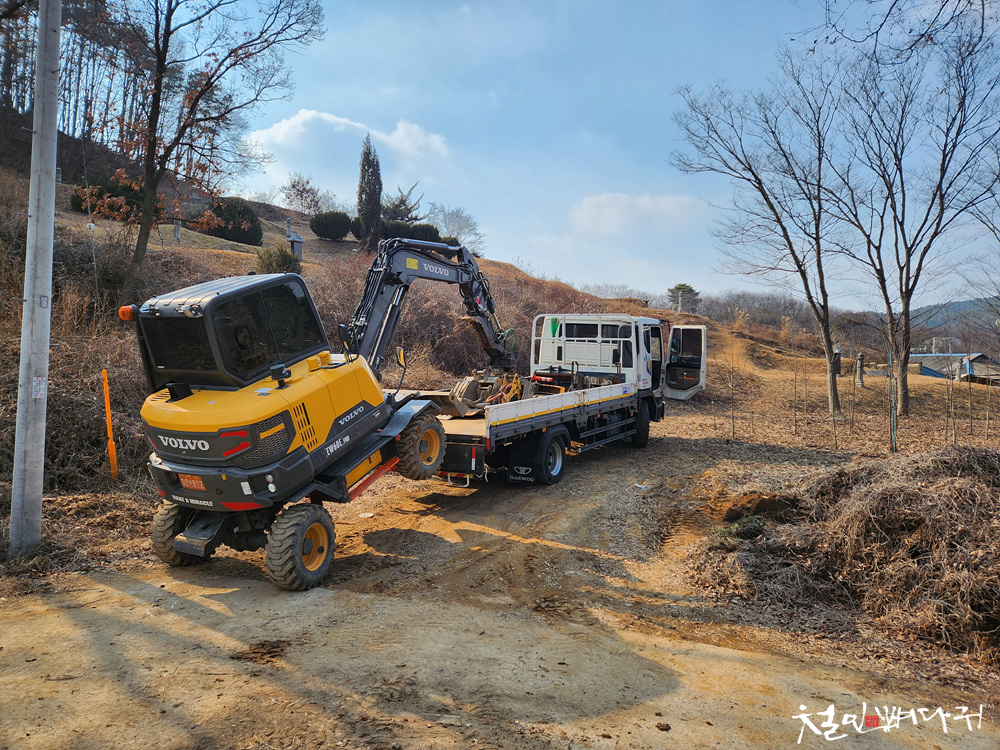 굴삭기를 차에 싣고 와서 작업해 주기로