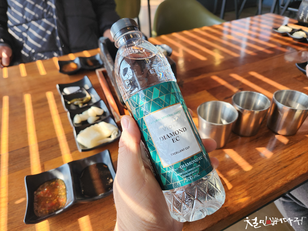 생수 한 병을 받아서 3명이 나눠 마셨습니다.