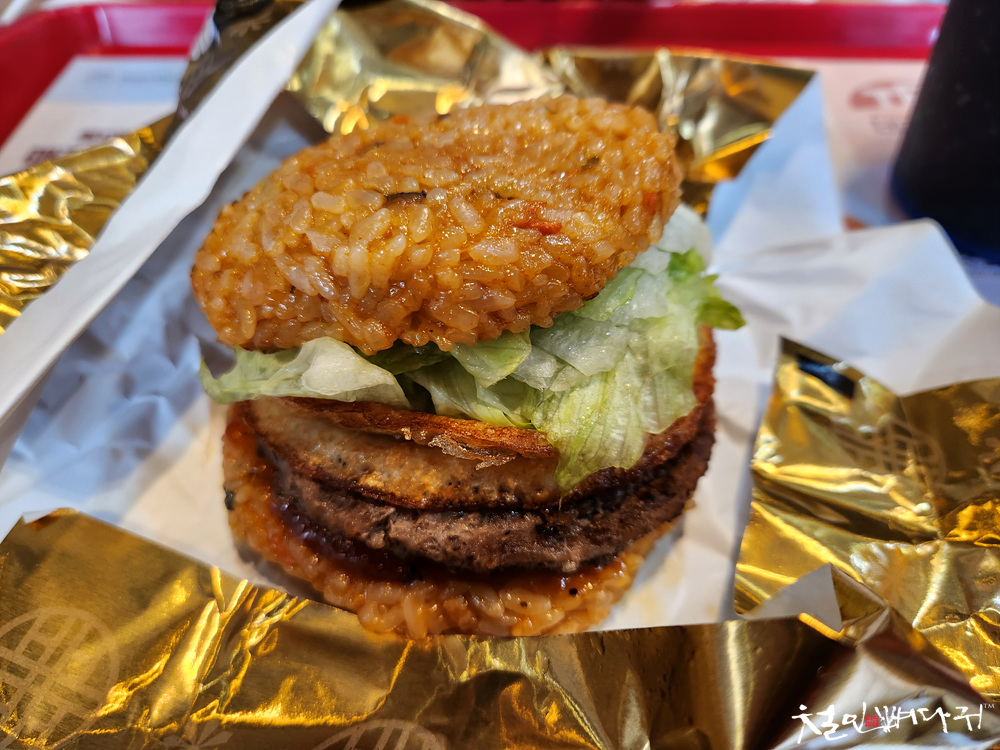 전주비빔밥라이스버거는 고기패드 한 장에