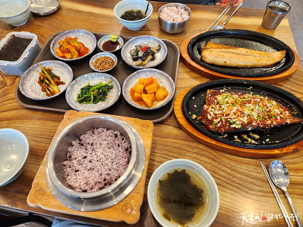 생선구이도 실하고, 반찬들도 맛있고,