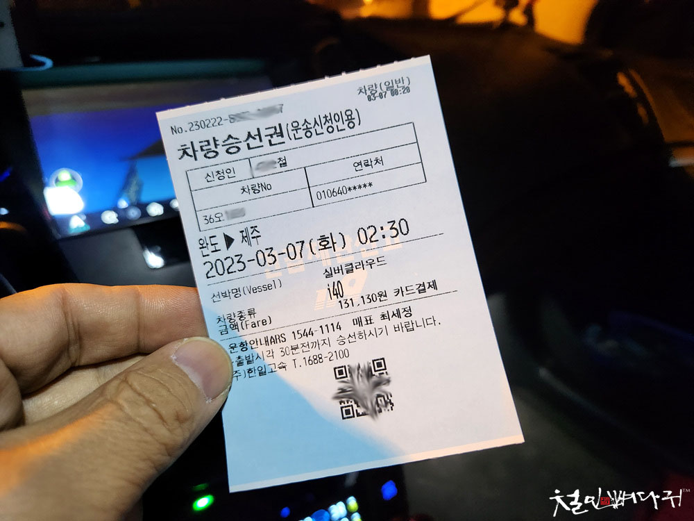 새벽 2시30분 완도항에서 제주항으로 출발하는