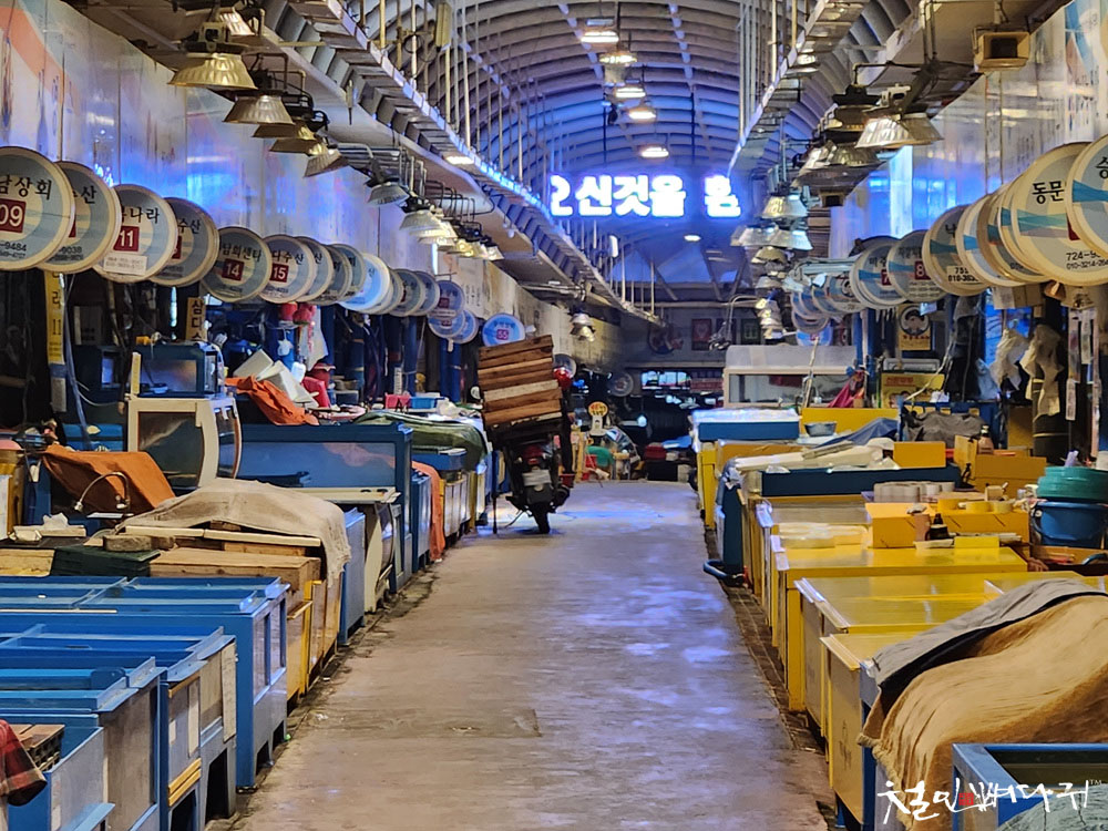 제주도에 새벽도착한 배에서 내려 동문시장으로