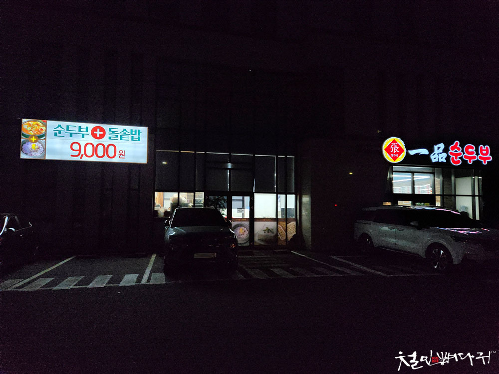 이동하다가 순두부+돌솥밥 9,000원 간판을 보고,