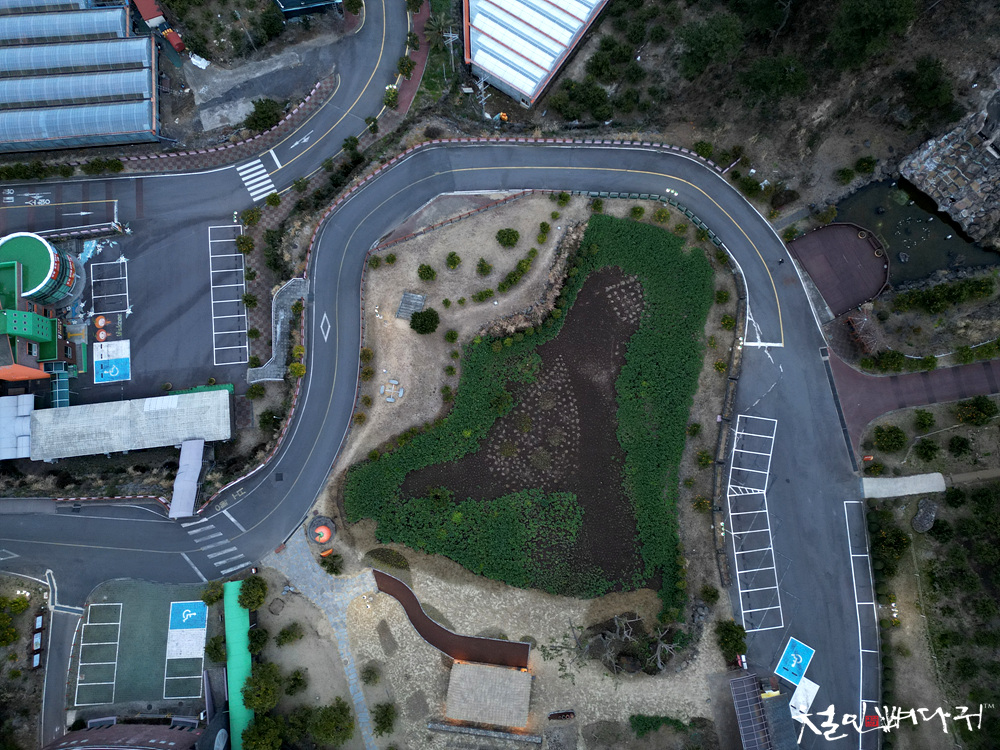 둘레로 자동차가 지나가는 길이 있는데,