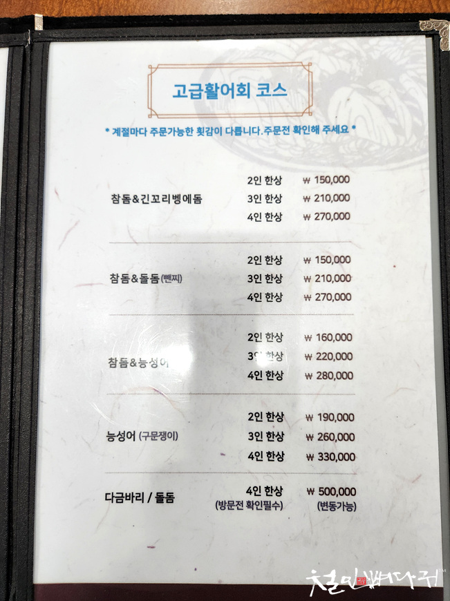 참돔&능성어 고급활어회 코스를 먹었는데,