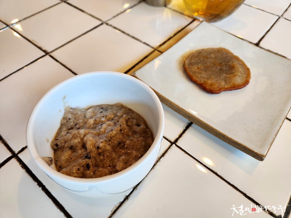 메인 식사 전에 톳죽과 감자전이 나왔습니다.