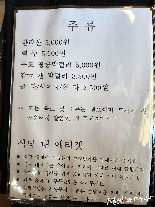 원래 식당이름은 작은 칠판에 천리식당이라고