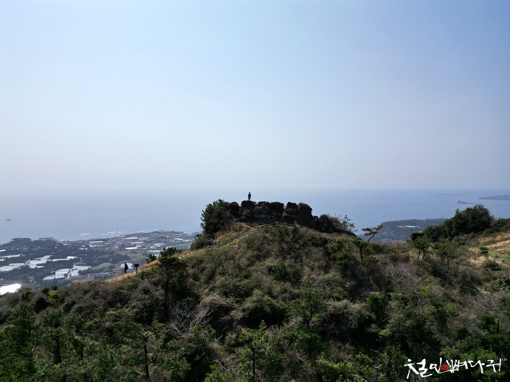 군산오름 정상에 서서 드론으로 촬영을 했는데,