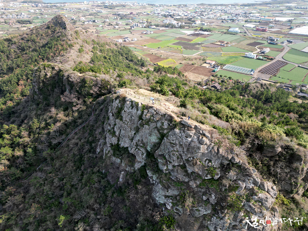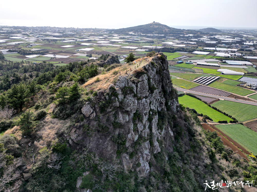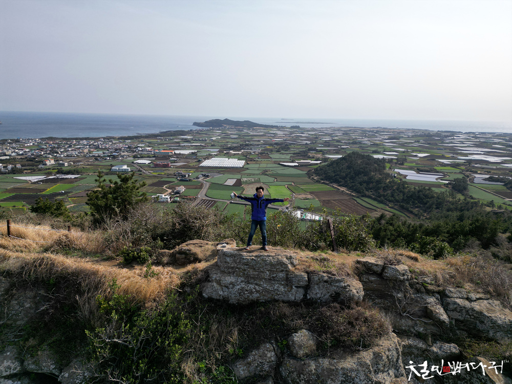 바굼지오름(단산)에서 드론 촬영을 합니다.