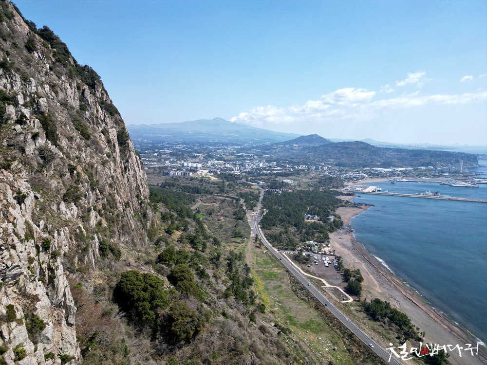 해안 따라 멀리 한라산도 잘 보이는