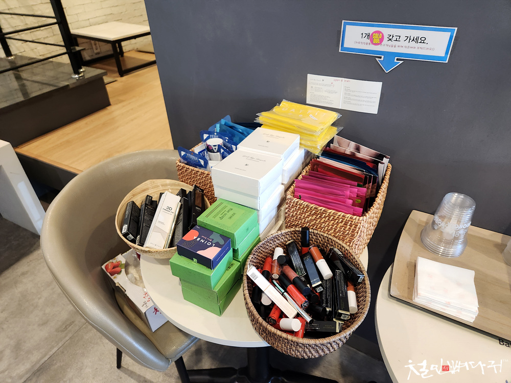 카페 한쪽에 손님들에게 한 개씩만 가져가라고