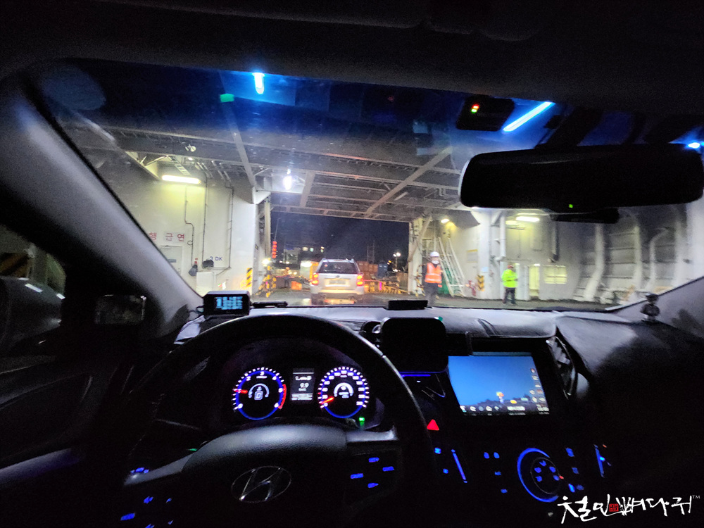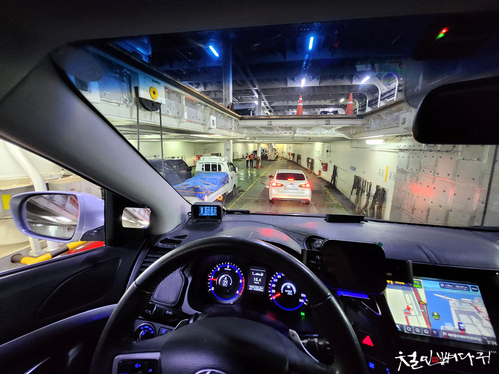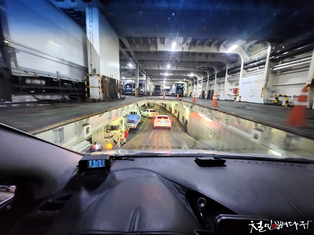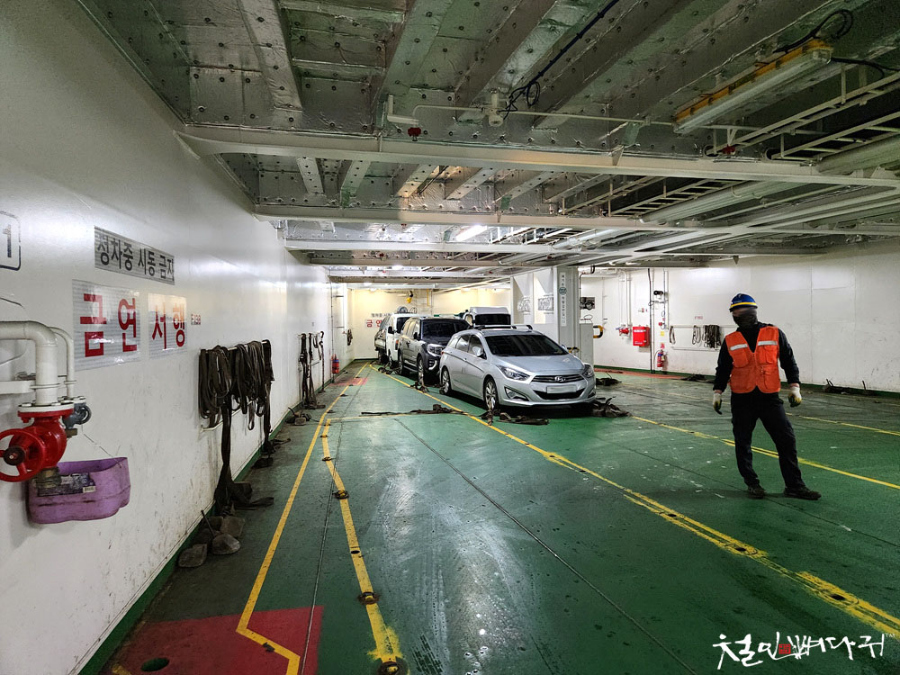 배 안으로 들어가니, 승용차들은 지하로