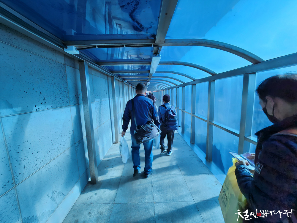 셔틀버스에서 내려, 제주여객터미널로 걸어가고,
