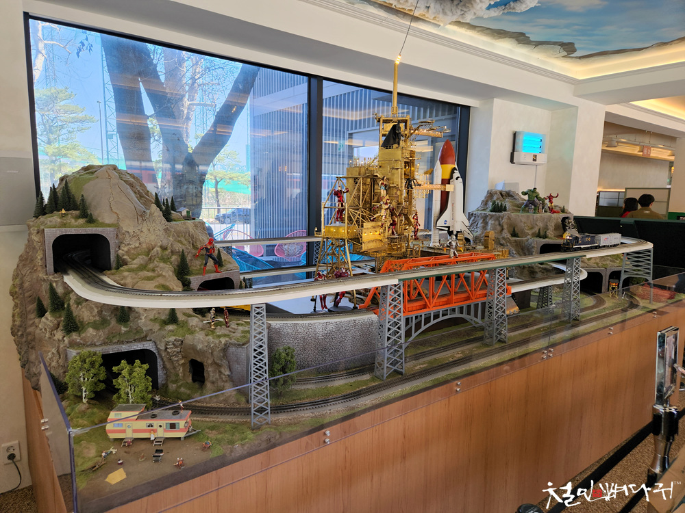 카페에 들어갔는데, 이곳에도 기차모형,