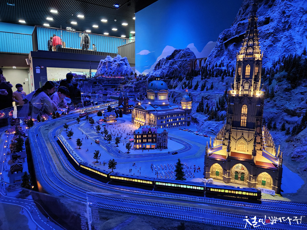내부에는 17m 길이의 스위스산악마을을