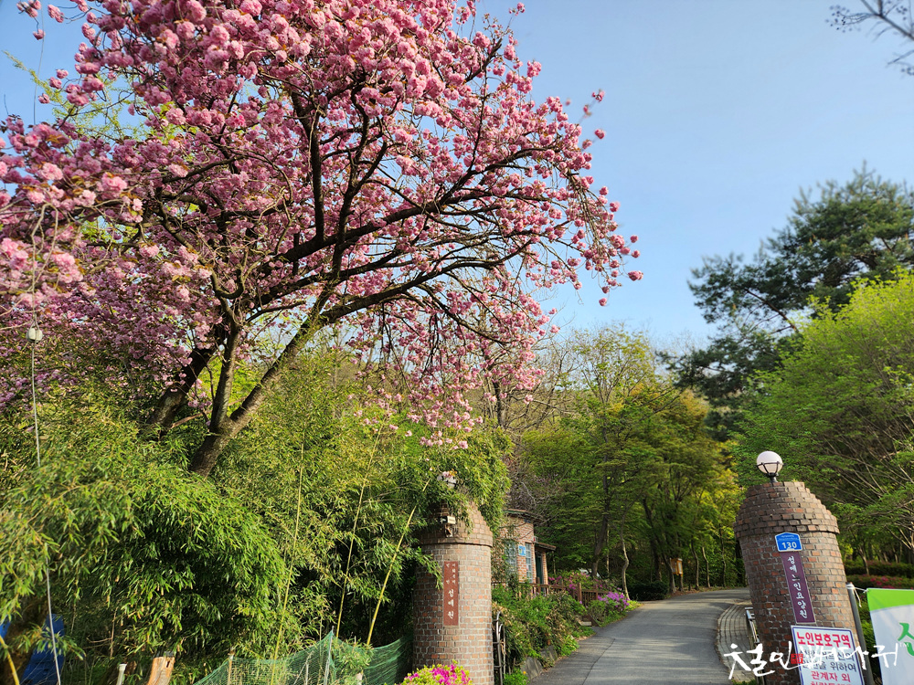 분홍색 겹벚꽃이 피어있어서 이뻤습니다.