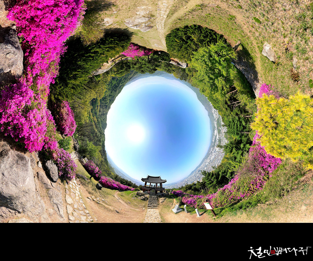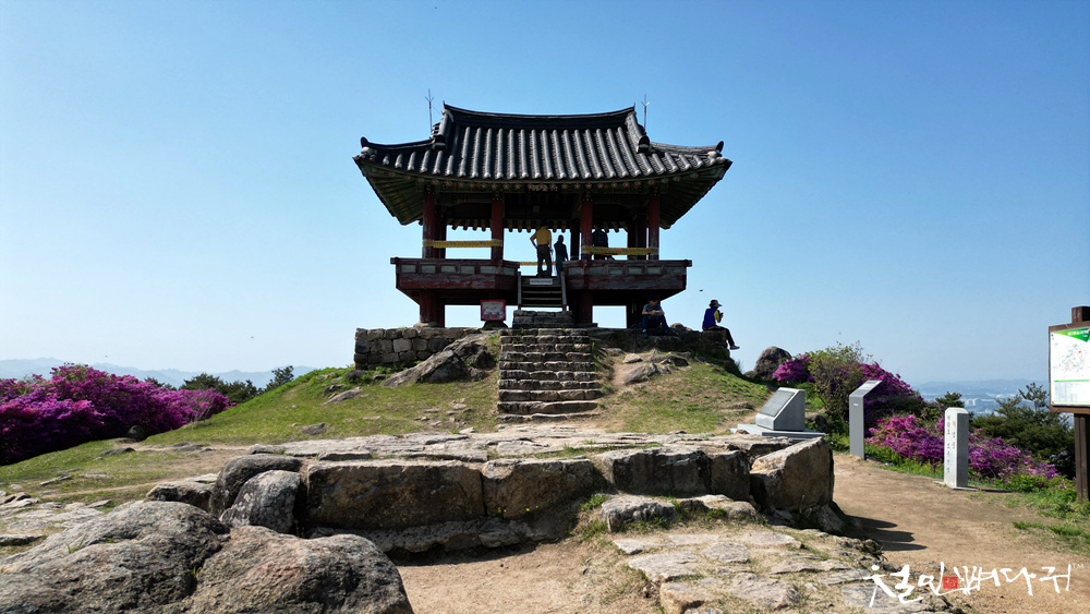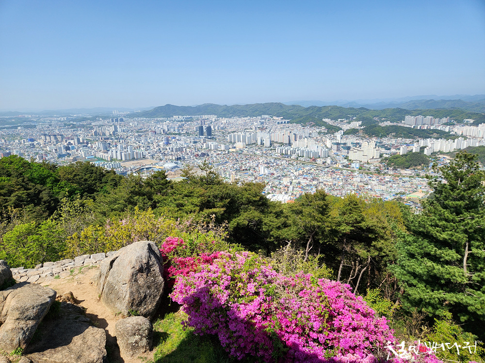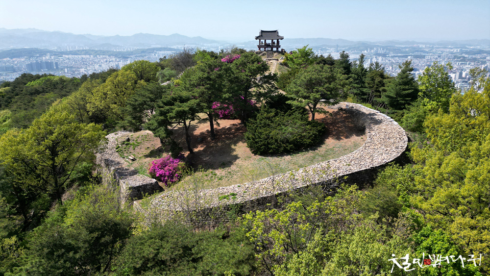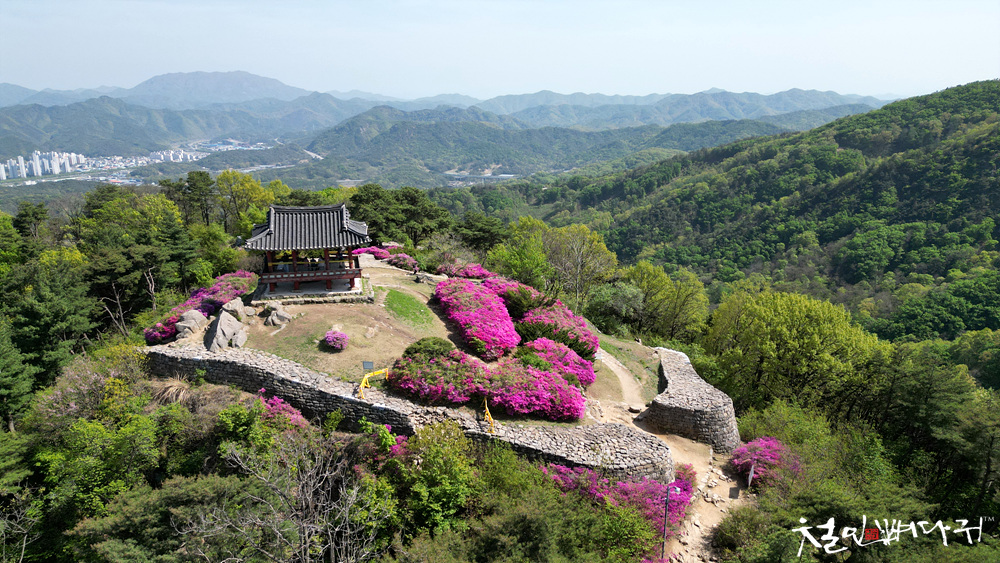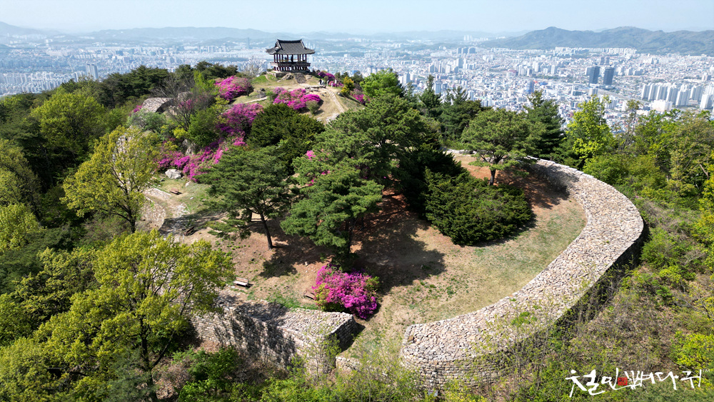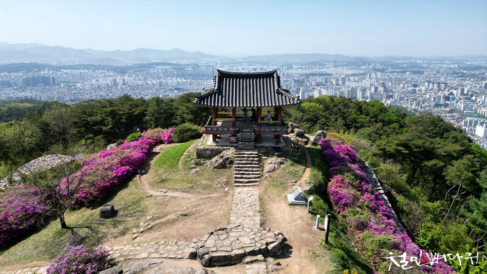 보문산성의 철죽꽃을 드론으로 촬영