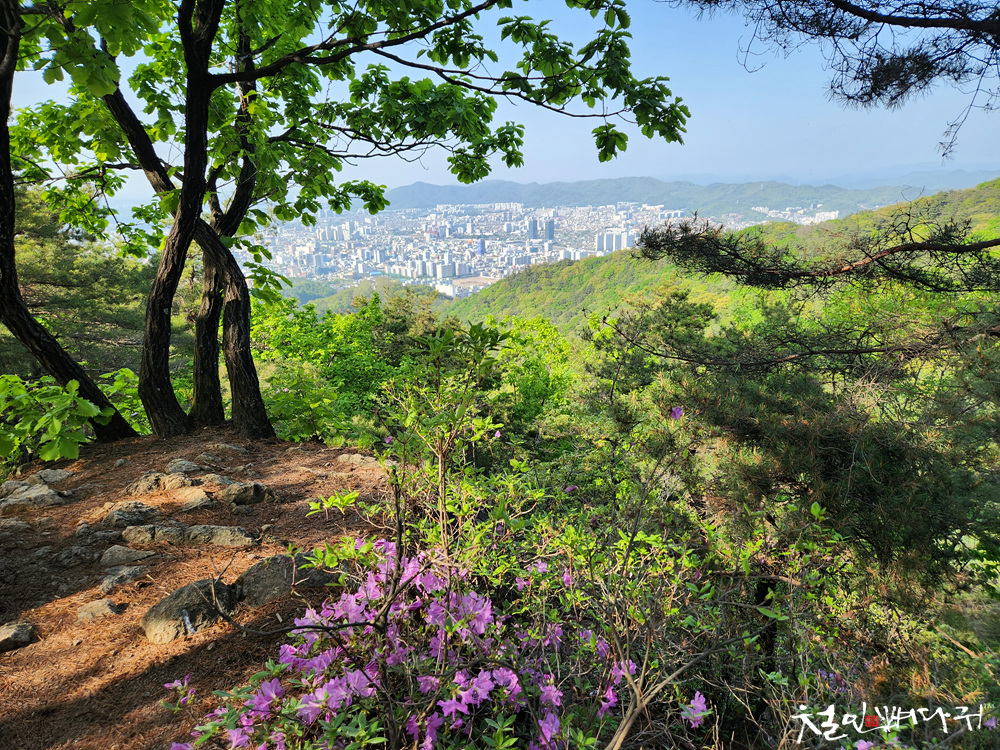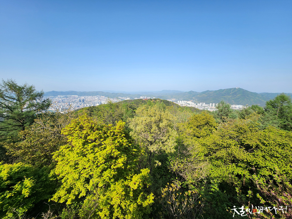 숲 사이로 대전시내가 보입니다.