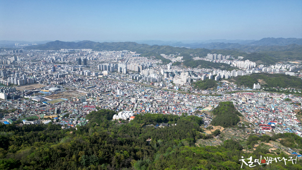 시루봉 상공에서 보이는 보문산성