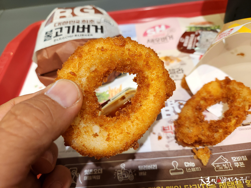 불고기버거, 콜라, 오징어링을 먹었습니다.