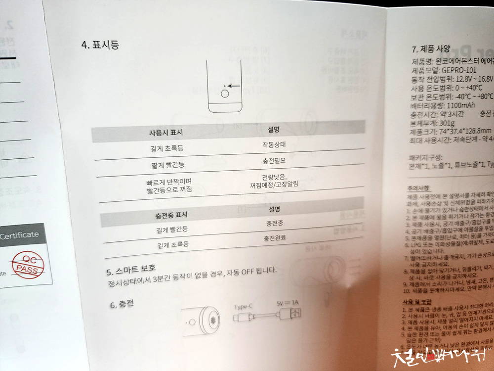 설명서는 전부 한글로 되어 있습니다.