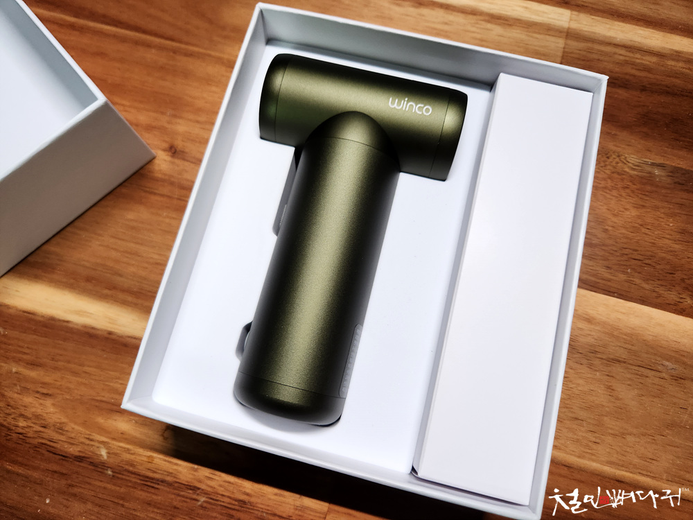 미니송풍기 본체와 하얀색 박스 하나가