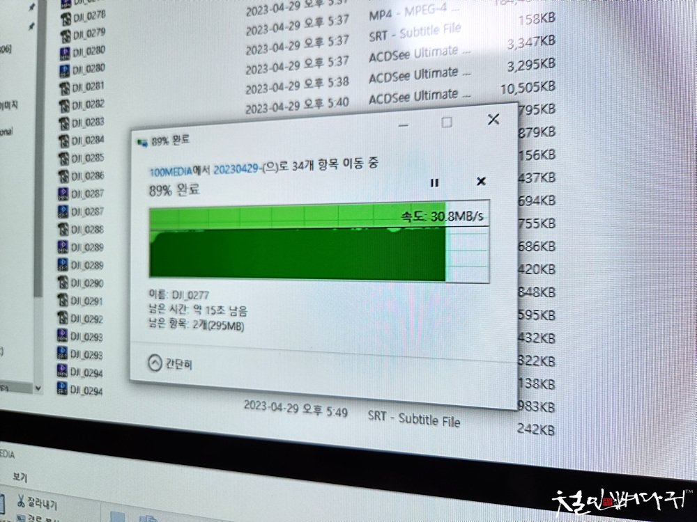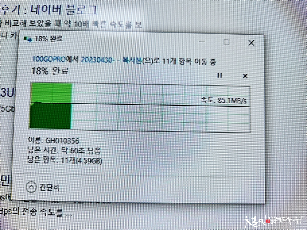 연결한 카드리더기의 속도는 80~90mb/s의 속도입니다.