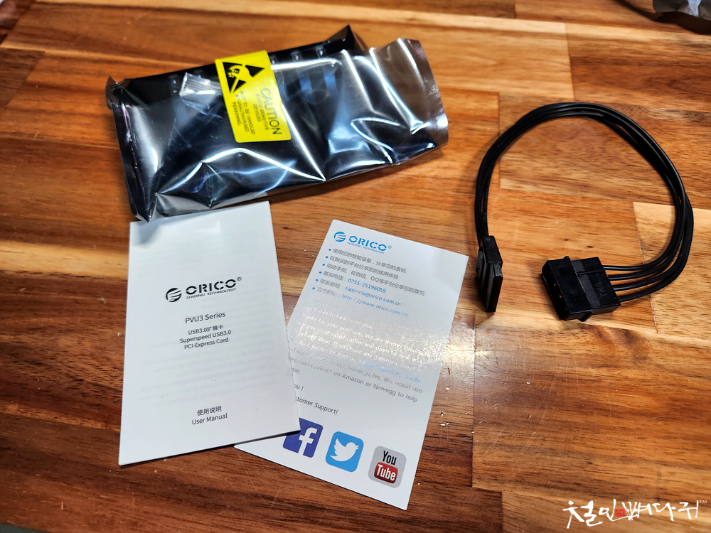 기본 구성품들은 PCI카드와 전원연결케이블,