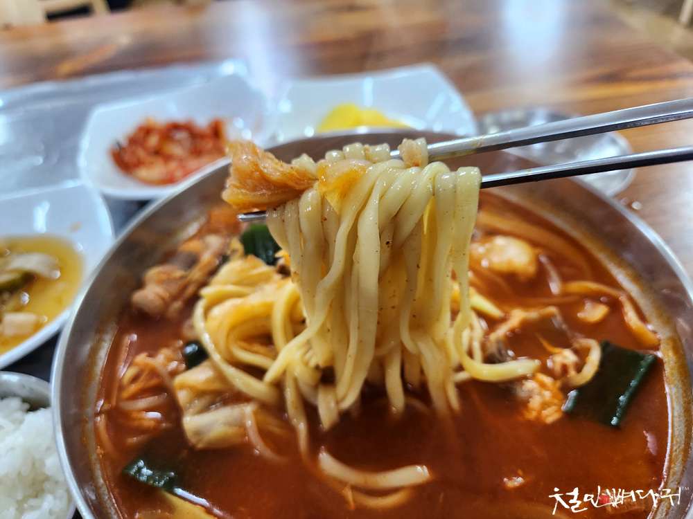 얼큰한 칼국수 같은데, 육개장맛이 납니다.