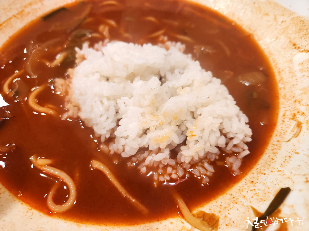 밥을 추가 주문했고, 밥 말아서 다 먹었습니다.
