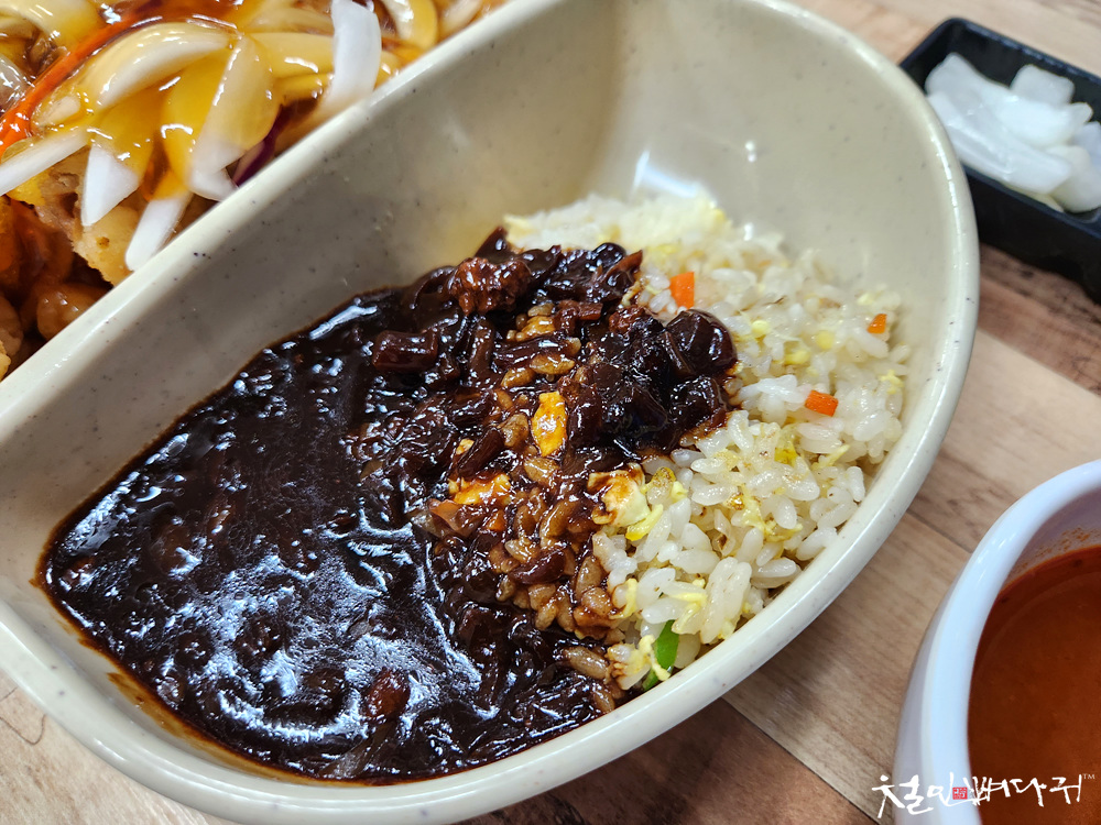 탕수육과 볶음밥이 같이 있는 반반메뉴입니다.