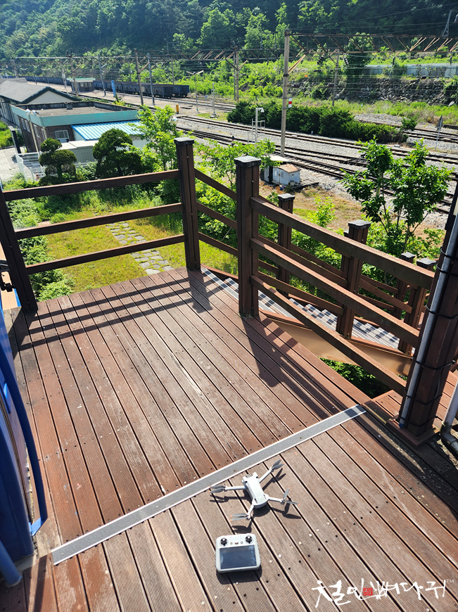 2층의 데크에서 드론을 날려서 주변을 촬영했습니다.