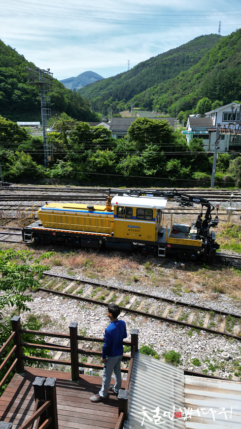 기찻길을 내려다볼 수 있습니다.