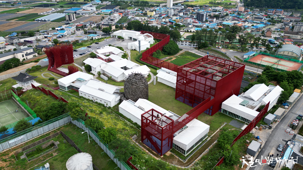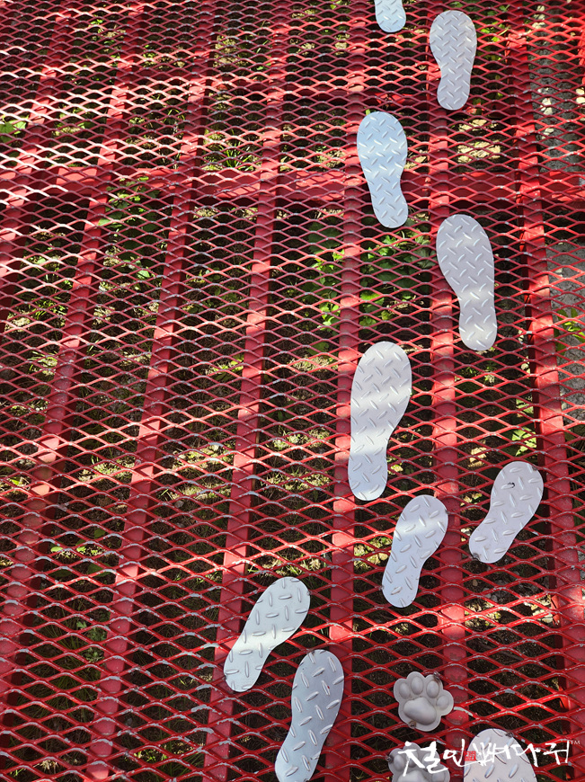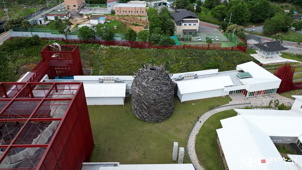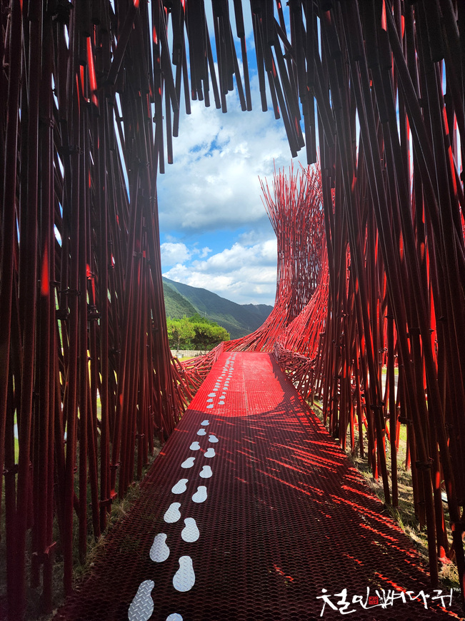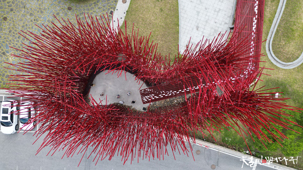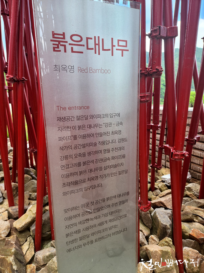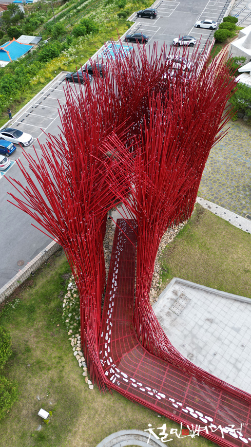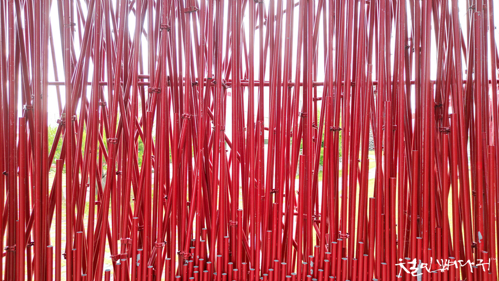 붉은대나무라는 작품이 주차장 옆