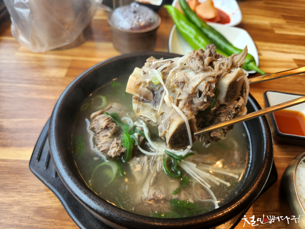갈비탕에는 고기들이 붙어 있는 뼈 3개가 들어있습니다.