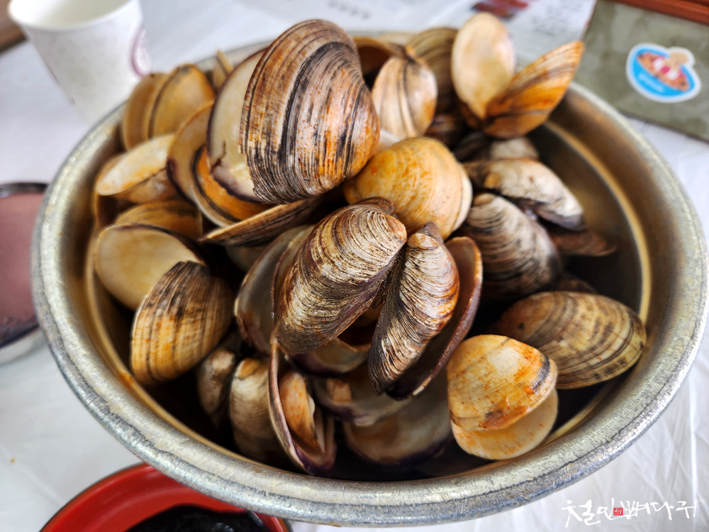 2명이 먹고 난뒤, 조개껍데기들입니다.