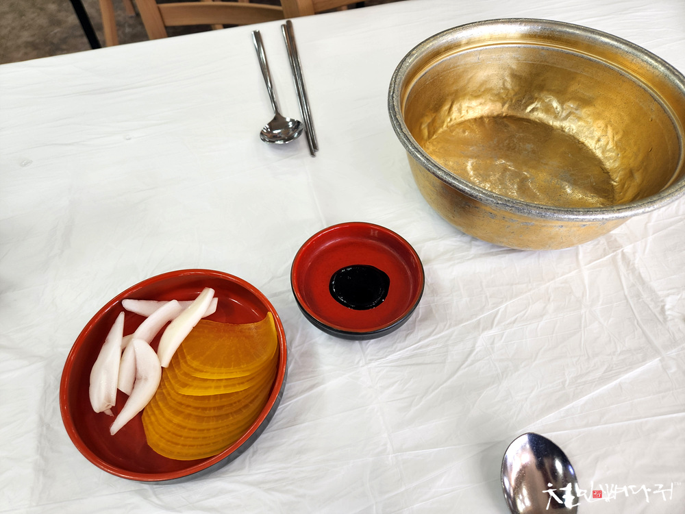 반찬과 조개껍데기 담아두는 양은그릇이 나옵니다.
